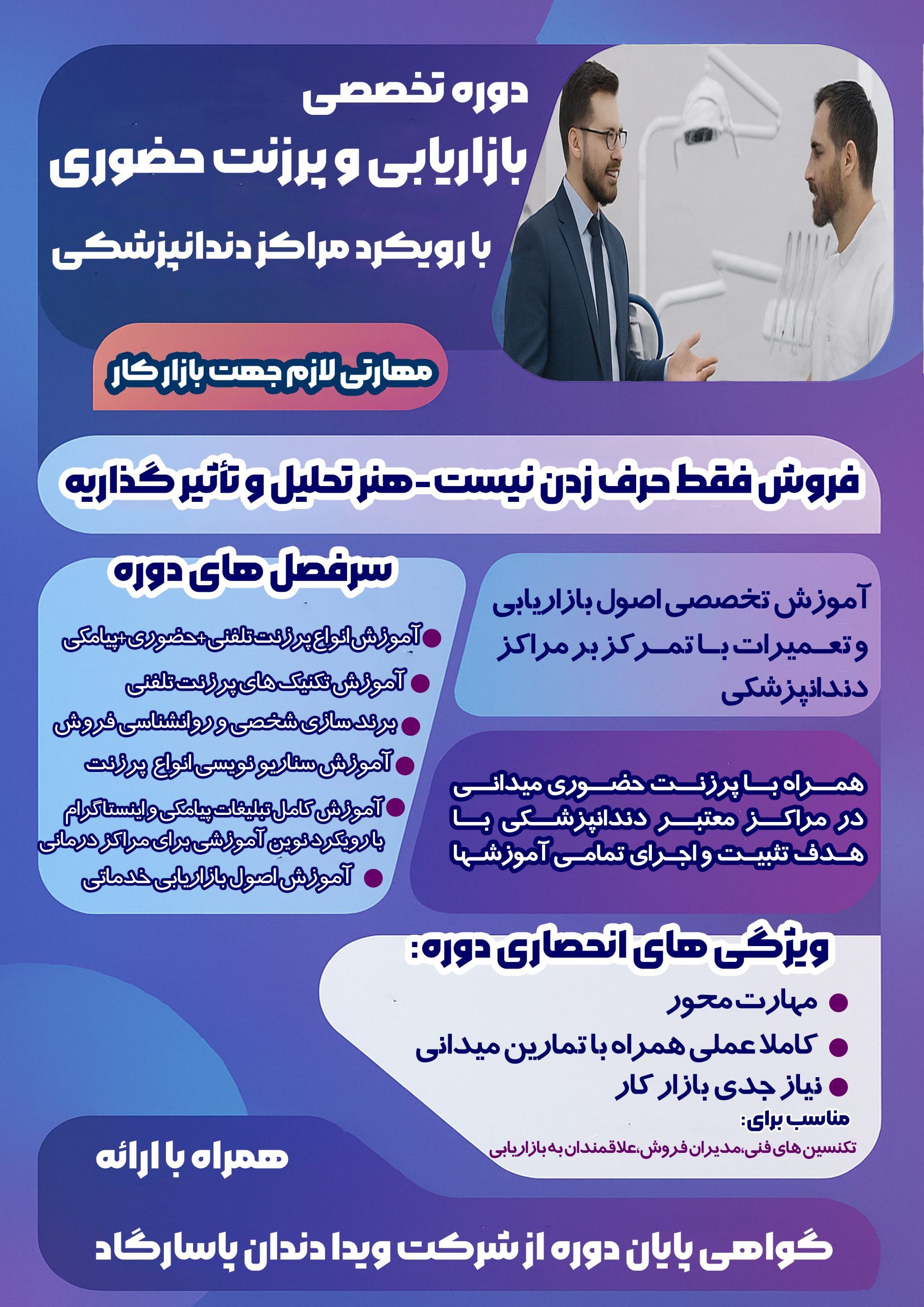 ما در ویدا دندان به شما یک آموزش برای اشتغال ارائه میدهیم نه صرفاً یک دوره آموزشی